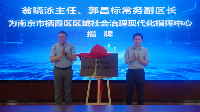 翁曉泳主任、郭昌標常務副區長為“南京市棲霞區區域社會治理現代化指揮中心”揭牌