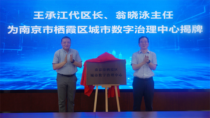 王承江代區長、翁曉泳主任為“南京市棲霞區城市數字治理中心”揭牌