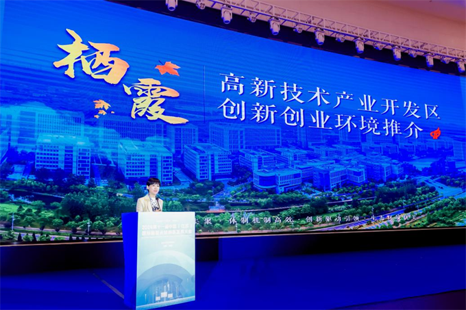 棲霞高新技術(shù)產(chǎn)業(yè)開發(fā)區(qū)管委會副主任徐薇介紹園區(qū)創(chuàng)新創(chuàng)業(yè)環(huán)境