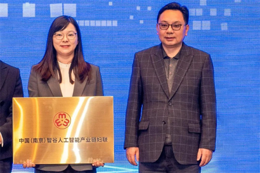 南京經濟技術開發區黨工委副書記尹軍為中國(南京)智谷人工智能產業鏈婦聯授牌。
