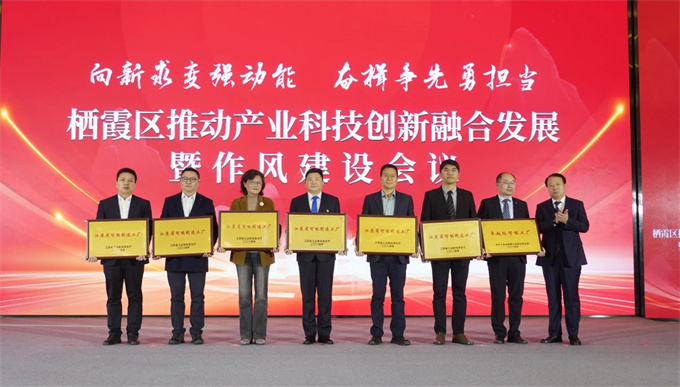棲霞區政協黨組書記、主席張常軍為入選“工信部卓越級智能工廠”和“省級智能工廠”企業授牌