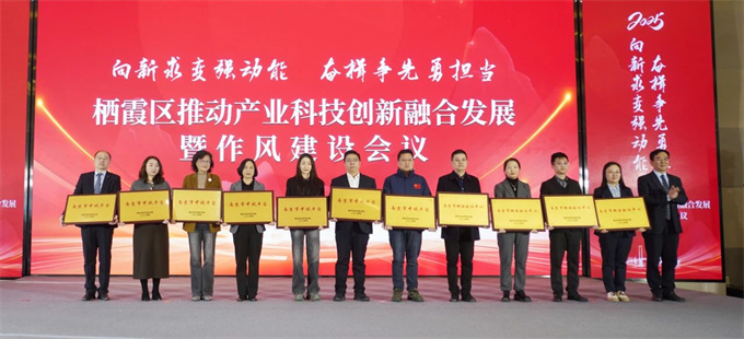 棲霞區委副書記、區長,仙林大學城管委會主任王承江為4家市級概念驗證中心和7家中試平臺授牌