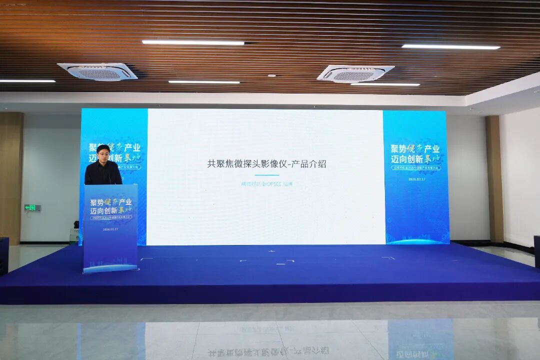 舉行醫療健康企業新技術新產品發布。三家企業分別展示了處于國際國內前沿的“硬核”科技成果,展現了邁皋橋健康產業的創新銳度。南京國康醫院揭秘了腦機接口與AI大模型在精神科及青少年心理健康領域的突破性應用;上海友合展示了共聚焦顯微內鏡與液氮冷凍治療設備的創新成果;江蘇洺晟生物科技發布了拉曼光譜技術在圍術期血藥濃度檢測領域的國際首創成果。