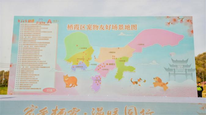 活動現場播放了棲霞區寵物經濟發展宣傳短視頻,生動展現了當地深耕寵物經濟、打造寵物友好生態的探索與成果。視頻落幕,棲霞區寵物友好場景地圖亮相大屏,三大核心特色場景同步發布,全方位覆蓋養寵群體的文旅體驗、運動休閑、情感互動等多元需求。