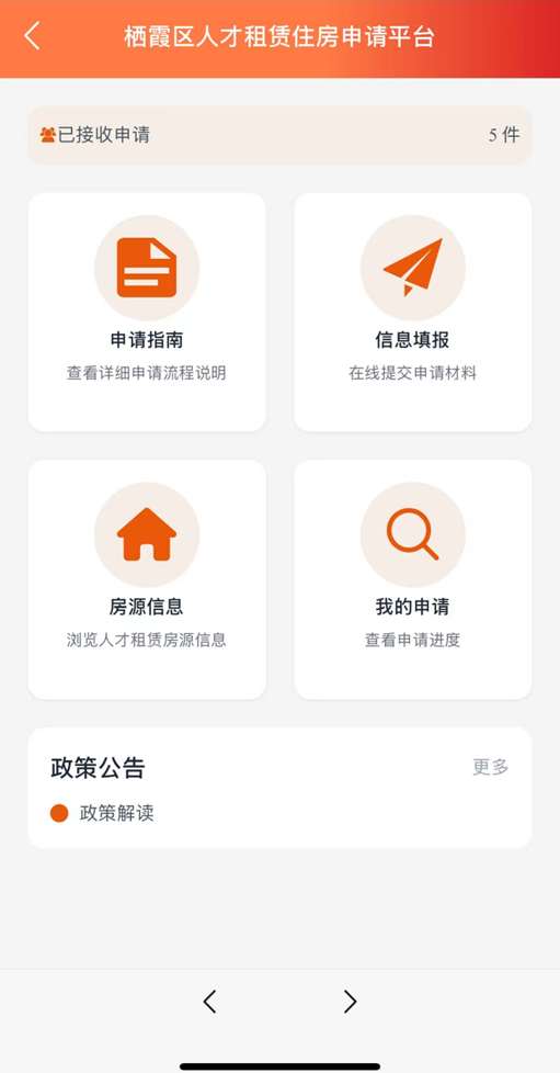 2. 登錄成功后,可在頁面查看申請指南、房源信息及政策公告。