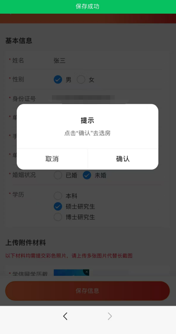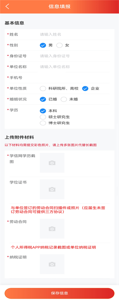 3. 點擊進入信息填報頁面,填寫個人基本信息、上傳相關附件并點擊保存信息。